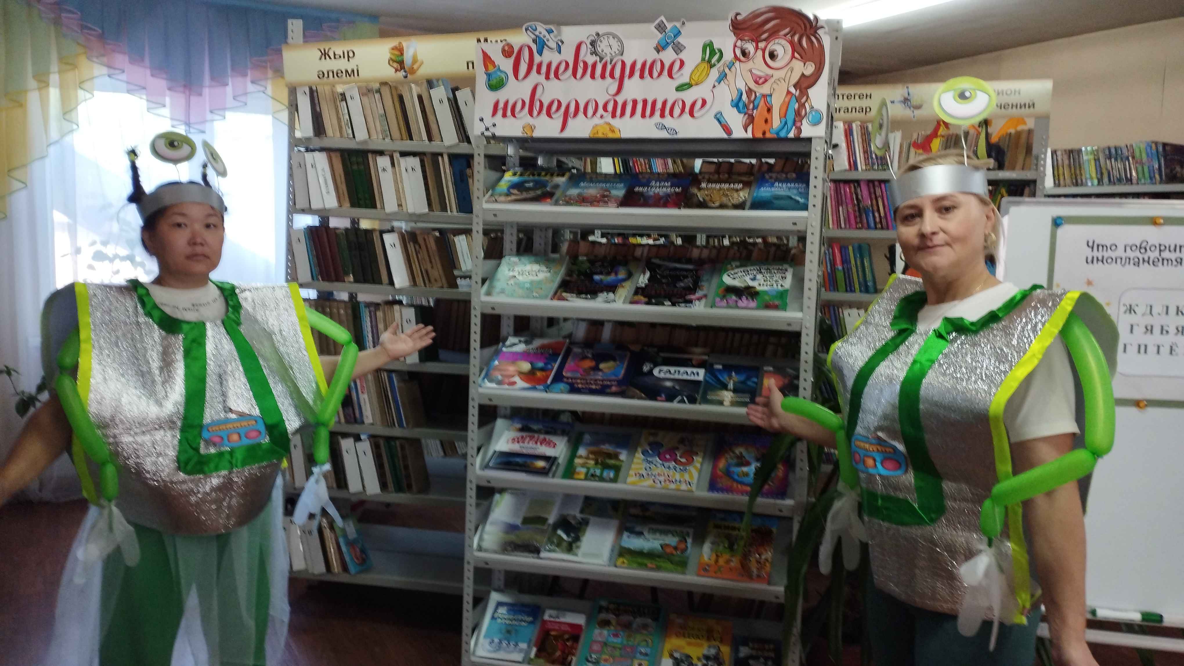 Инопланетные гости вместе с ребятами отгадывали загадки, играли в игры, отвечали на вопросы викторины «Природные чудеса» и «Невероятная Земля». А обзорная выставка «Очевидное невероятное» познакомила с книгами, раскрывающие феноменальные явления и открытия, которые на первый взгляд кажутся невозможными, но имеющие научное объяснение.